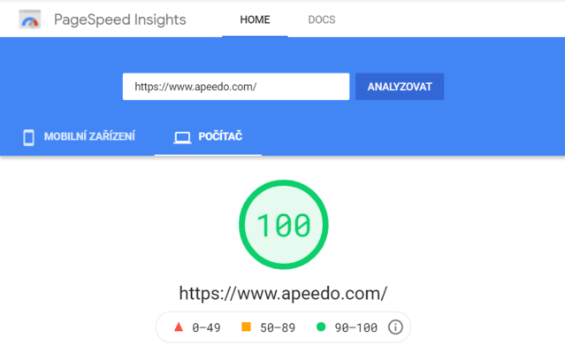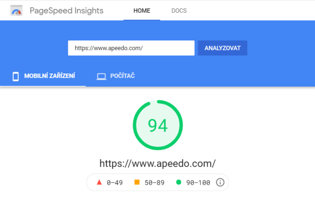 – Google PageSpeed Insights Score Mobile / Desktop (minimálně 80/80)