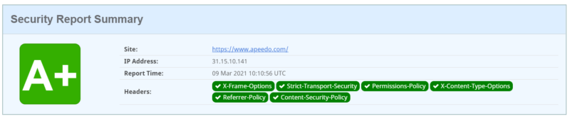 – Securityheaders.com Grade (alespoň B, běžně dosahujeme A+)